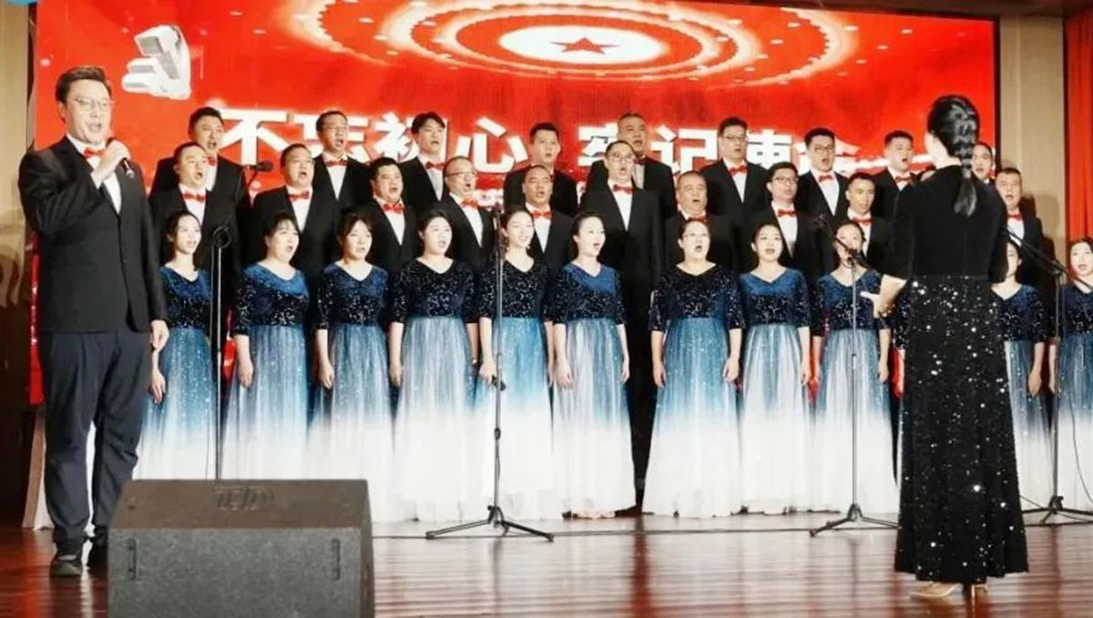 合唱团共35人,分别来自家宝各个岗位的党员,作为非专业歌唱人员,大家专门在练声、练气的基本功上加强学习,掌握唱歌技巧,并邀请专业的声乐老师,对合唱队员的口型、眼神、姿势及队伍排列等方面进行指导和排练。为呈现对党的讴歌颂扬,回顾中国共产党人用热血和生命铸就的雄壮历史,重温革命先辈用理想和信念丈量的伟大征程,家宝园林党支部以《七律·长征》、《不忘初心》两首歌向我们的党和祖国献礼。