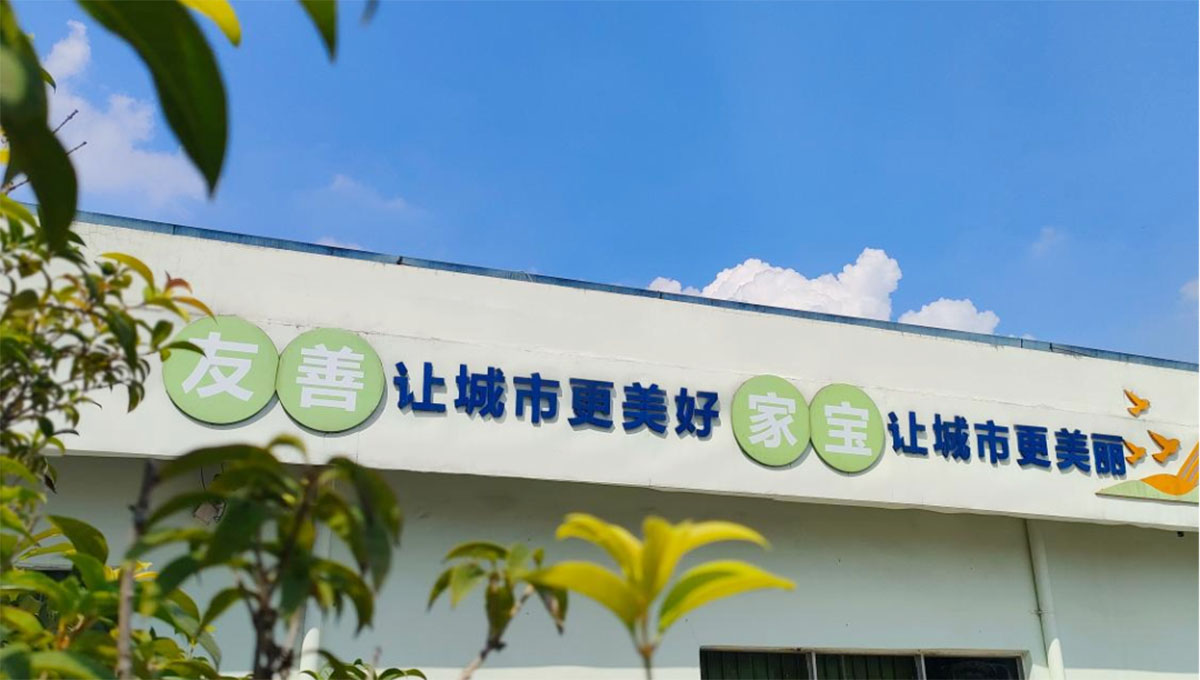 走进位于厚街镇赤岭社区的家宝园林东莞总部,便能看到明晃晃的一排标语:“友善,让城市更美好;家宝,让城市更美丽。”这句话不仅刻在墙上,更刻入了家宝人的基因里。