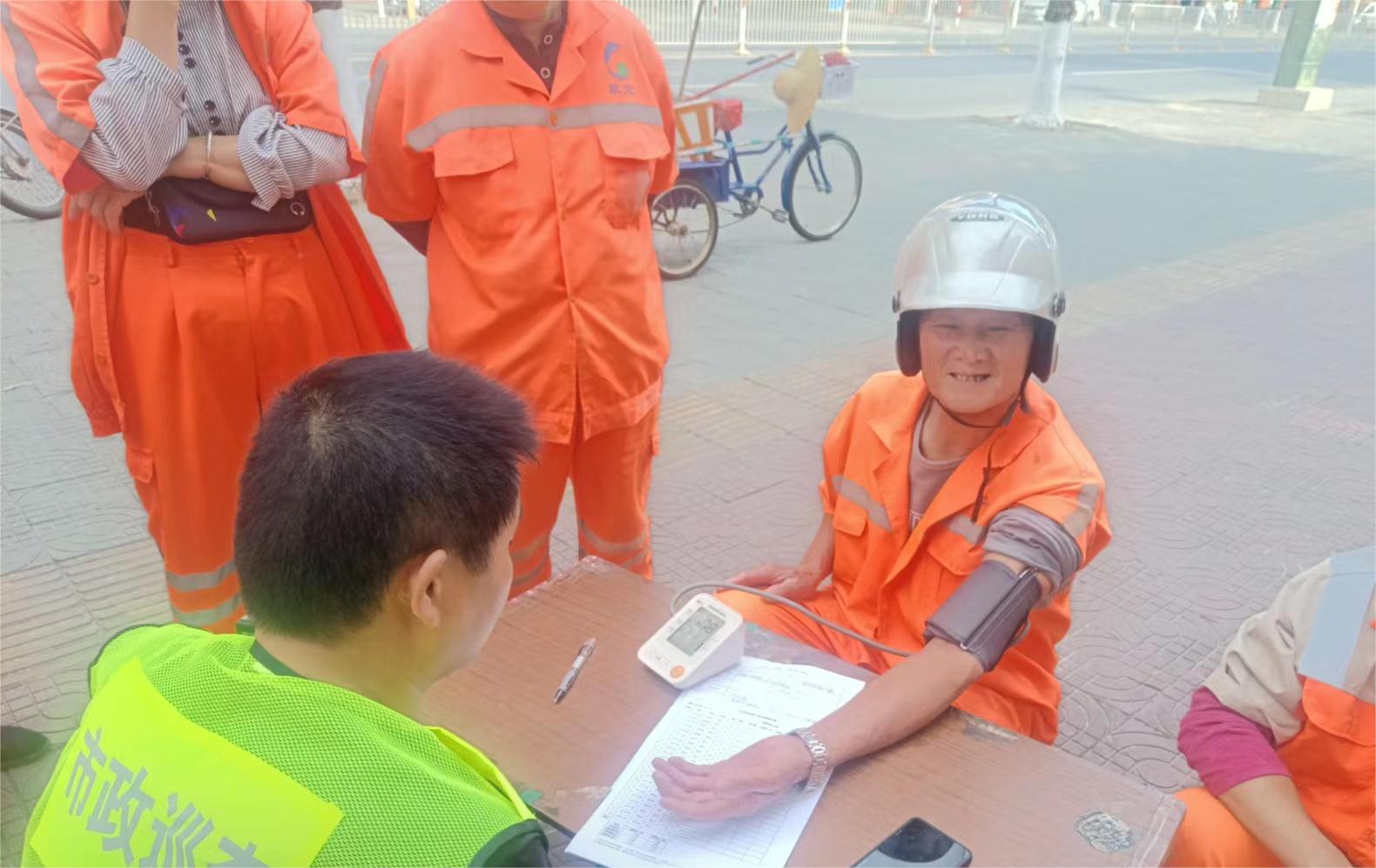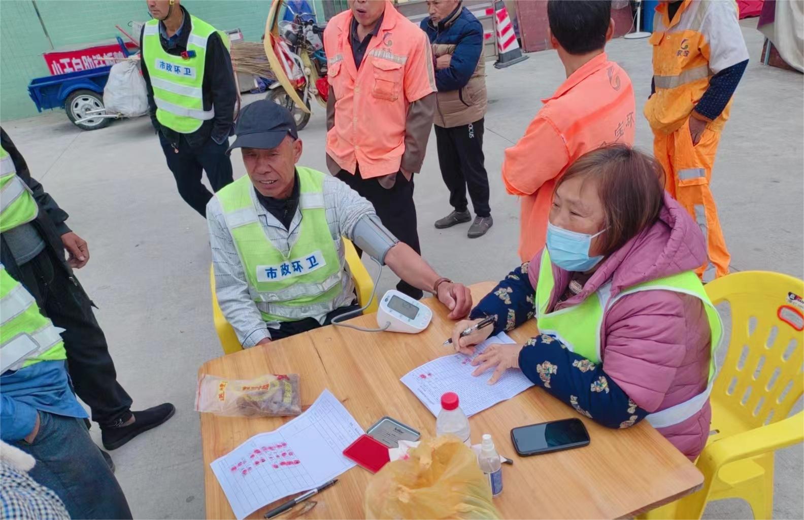 为进一步帮助、引导环卫工人增强安全意识,关注自身健康,家宝园林定时为一线环卫工人开展测量血压工作,过程中耐心地询问每个人的血压状况,悉心为每一位环卫工人测量,详细登记,并宣导大家及时添衣保暖,作业时要戴好口罩和手套,生活中要合理饮食,尤其血压较高人员,要服用降压药,如身体感到不适应及时报告主管,确保身体健康、作业安全。