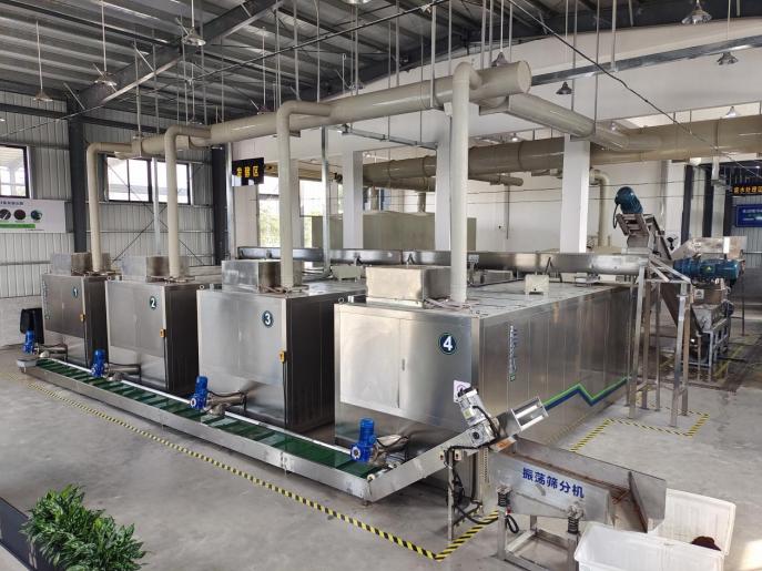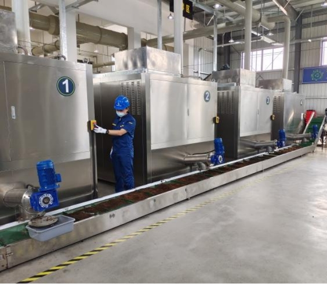 东莞市沙田镇厨余垃圾资源化处理项目于2020年12月建成,次年二月投入使用,项目占地面积798平方米。主要针对全镇的农贸市场、住宅小区、社区、机关单位等,包括生活垃圾示范区域投放点的厨余垃圾进行收集处理。该项目采用微生物高温好氧发酵工艺,通过各子系统之间的协同,厨余垃圾经过24 h高温好氧发酵后转化为有机肥料,减量率≥85%,有效实现厨余垃圾的无害化处理和资源化利用。所得有机肥质量全面优于农业部《有机肥料NY525-2012标准》,可作为市政园林绿化用肥,也可经过深加工后做成附加值更高的有机肥料。