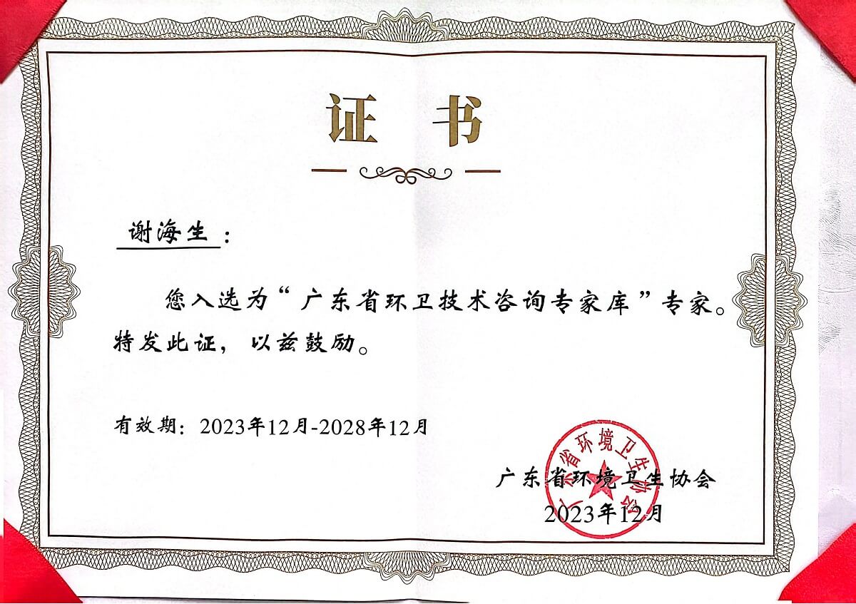 入选“广东省环境卫生技术咨询专家库”专家
