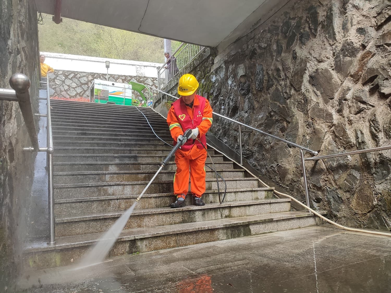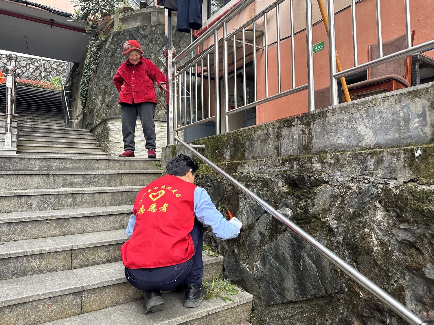 新安街道汪家路上颐养居养老院居住着80多位老人,志愿服务队利用休息时间来到养老院,清理院内角落杂草,陪老人晒太阳聊家常,公司开来清洗车,将院内台阶、步梯从上到下进行打磨冲洗,让院内阶梯可席地而坐,身不染尘。
