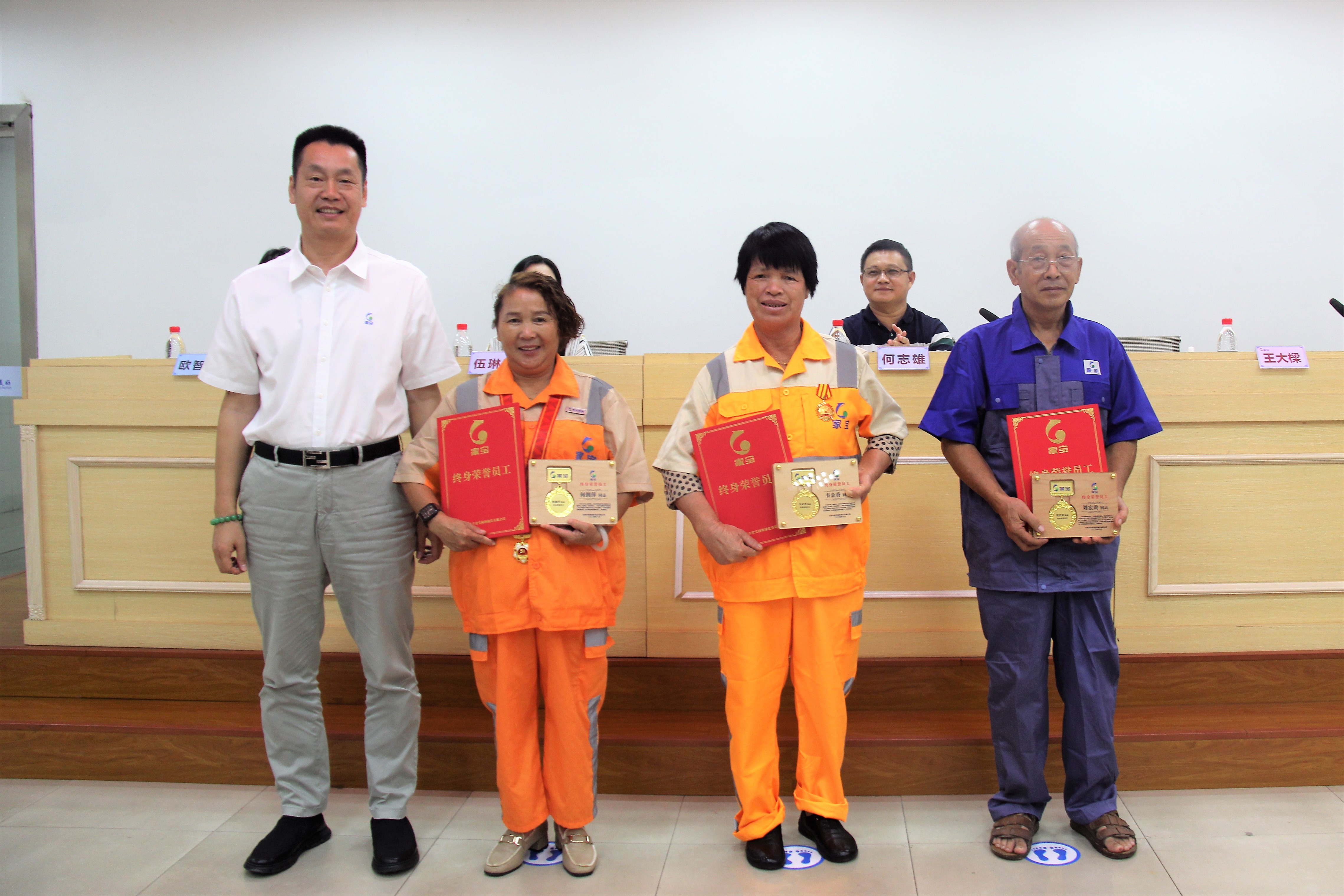 会上,家宝集团总裁王大樑分别为韦金香、何拥萍、刘宏贵三位曾为公司做出特殊贡献的员工颁发了“终身荣誉员工”证书和牌匾,并对三位员工多年来的辛勤付出与无私奉献表示感谢。该荣誉终身有效,且获得荣誉的员工,在每年环卫工人节还将获得公司发放的10000元荣誉津贴。