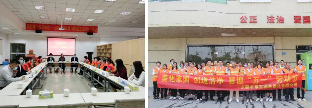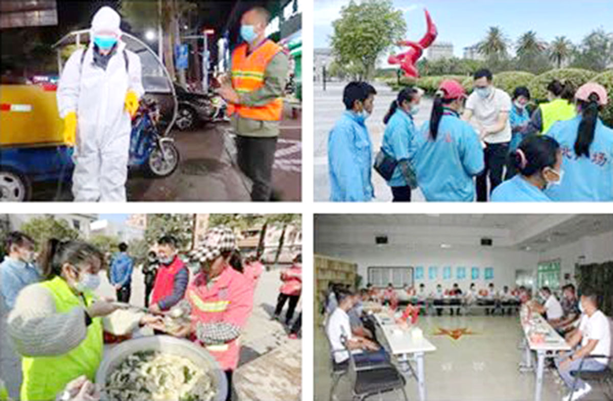 疫情期间,家宝的党员带领职工主动坚守一线,开展城市消杀以及清扫保洁工作,确保城市干净卫生。每年定期开展“党建+员工关怀”活动,为一线员工送早餐、送凉茶、送姜汤等;带领集团工会、团支部、妇委会开展退伍军人茶会、员工生日会、拓展训练等活动。