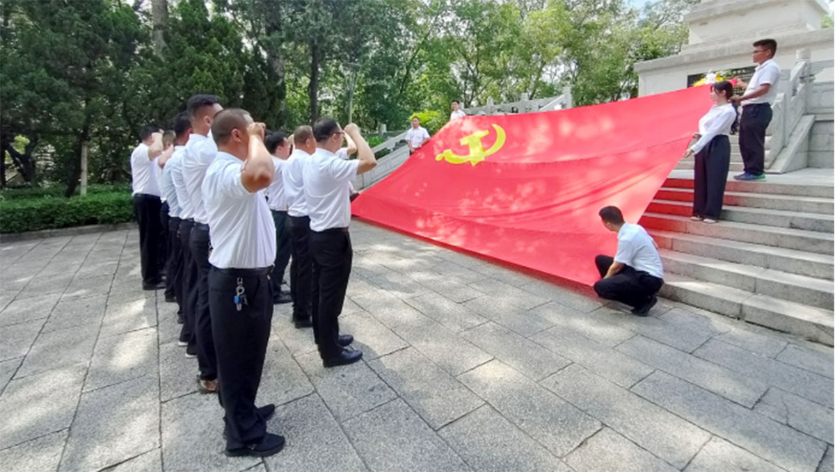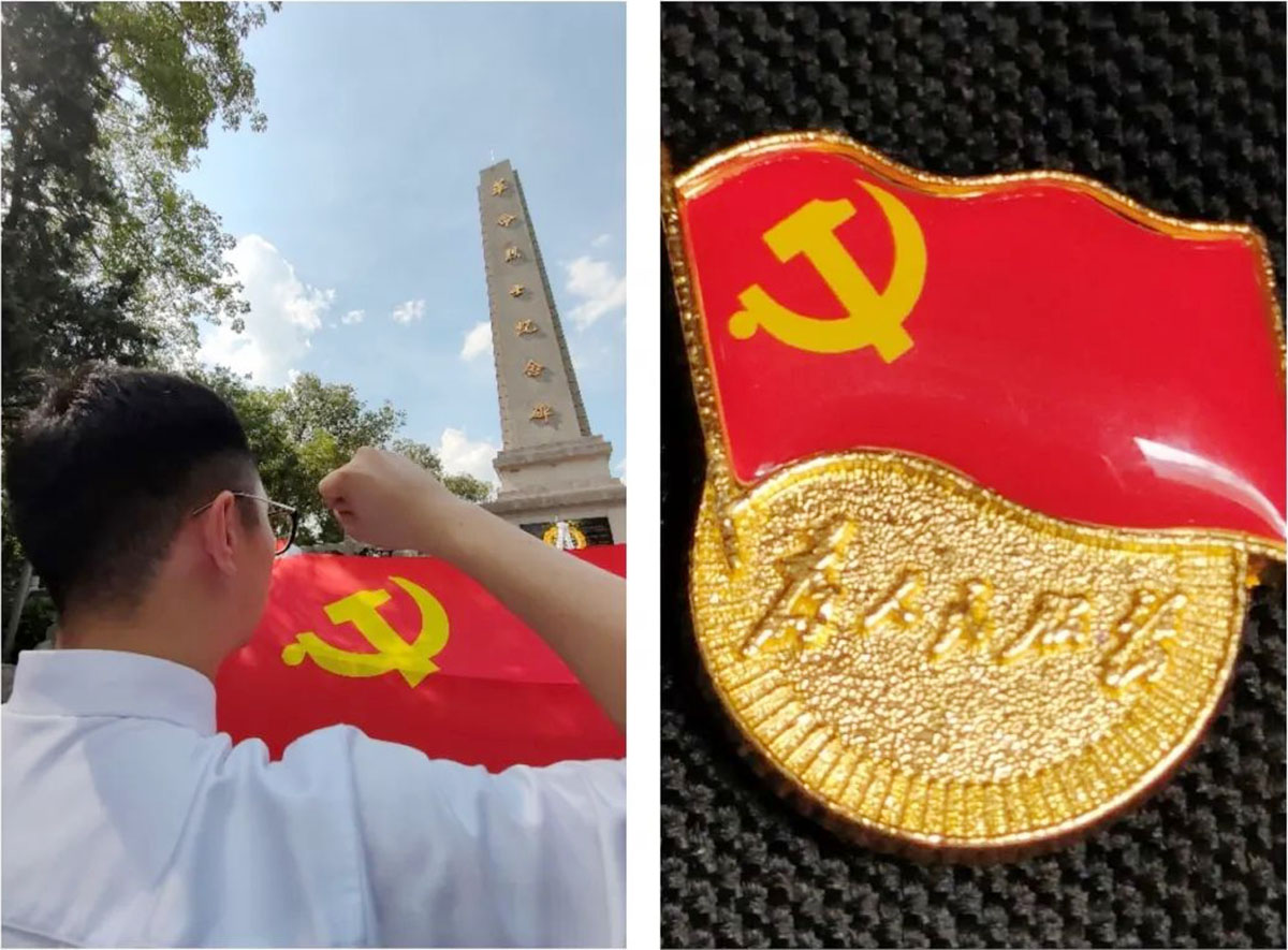 5月27日,在党支部书记方冠文的带领下,25名党员集体来到东莞革命烈士纪念碑、青年抗敌同志会遗址,重温入党誓词,学习红色革命精神。